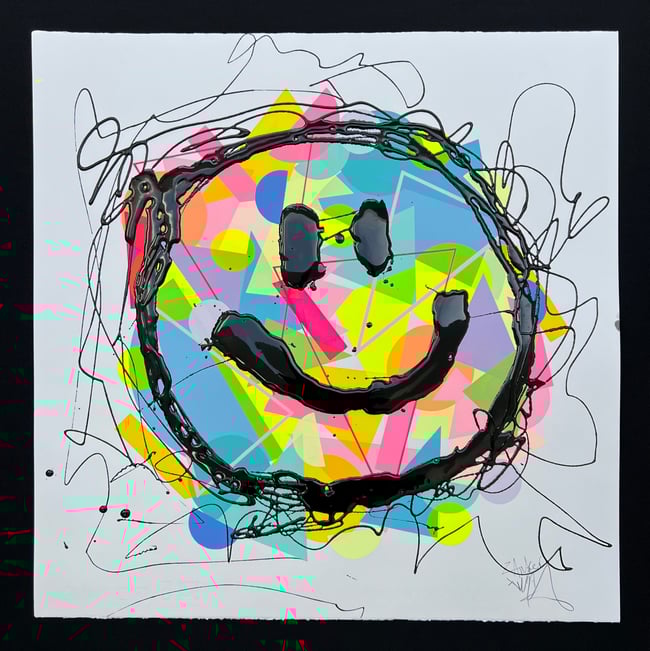 A unique one of kind multi layered screen print with pigmented polyurethane resin